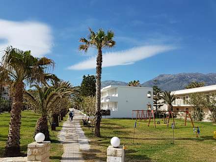 Vom Restaurant/pool Weg zu den 600 ,700 Häusern (de Luxe Zimmer)und ganz hinten am Parkplatz das 500 er Haus. Ganz rechts : das fremde Hotel mittendrin