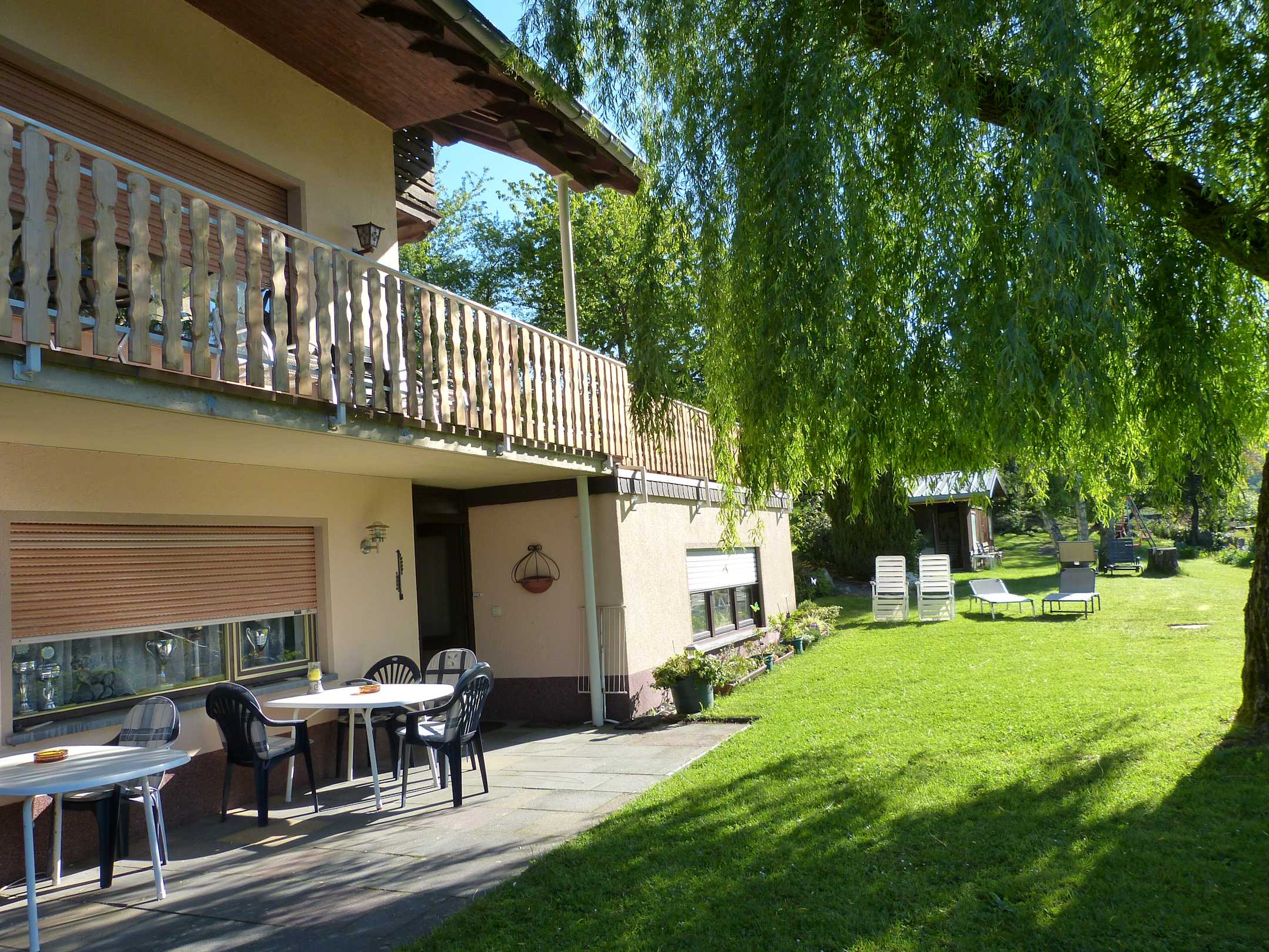 Links im Anbau dieFerienwohnung mit Blick auf Rasen, zum sonnen, grillen usw.