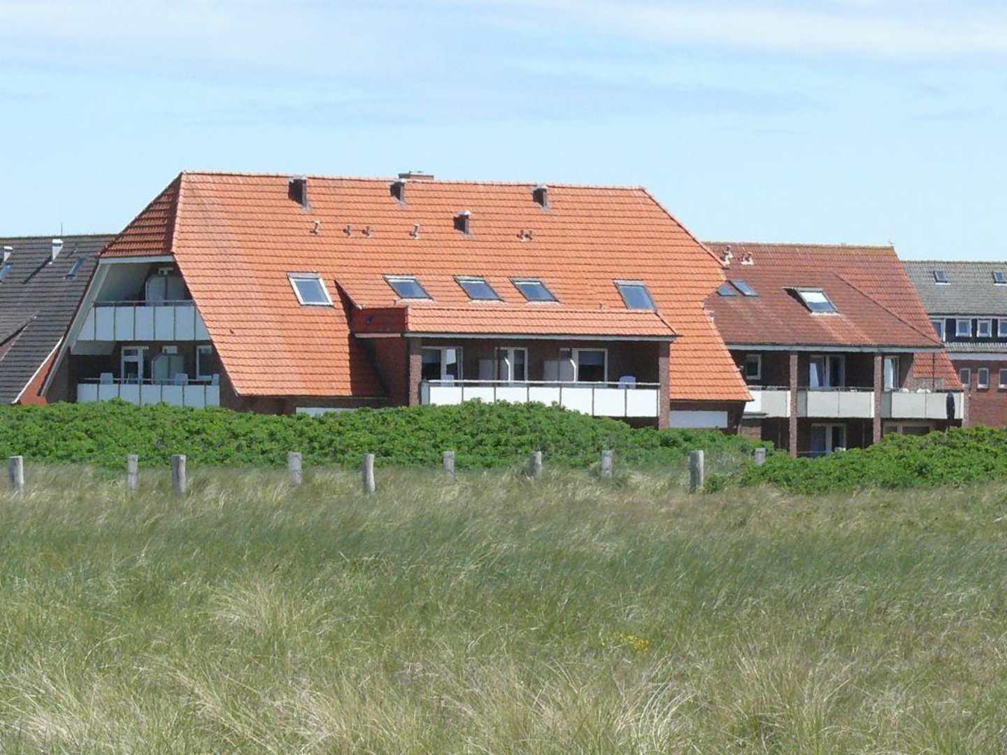 In den Dünen direkt an der NordseeBlick Richtung Osten auf die Sonnenseite der Pension Küper 'Hasu an der See'