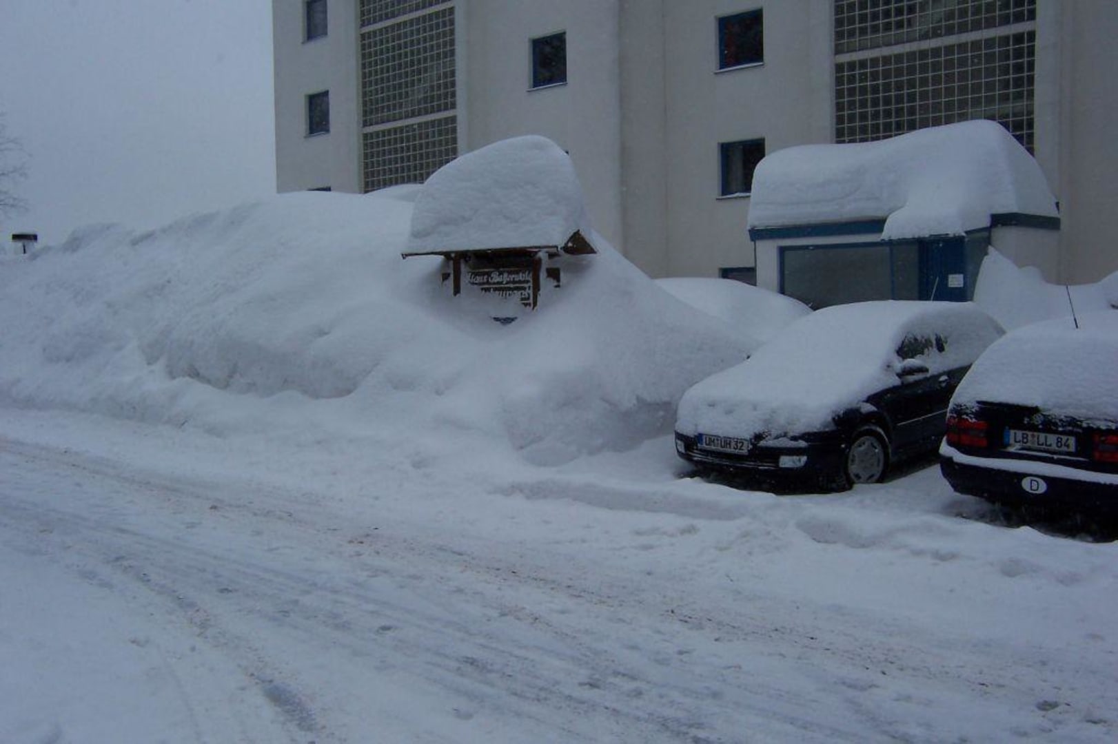 Parkplatz Bereich vor dem Hotel, Schneehöhe über 200 cm