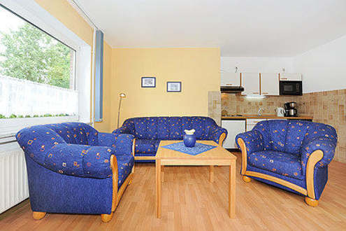 Wohnzimmer mit Küche, Wohnung "unten links"
