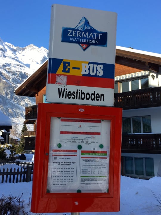 Bus Rote Linie Zermatt WiestibodenSie fahren direkt mit dem Elektro-Bus vor das Haus Fleckstein.