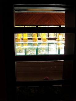 Vom Flur aus konnte man den Poolbereich durch dieses Fenster sehen.