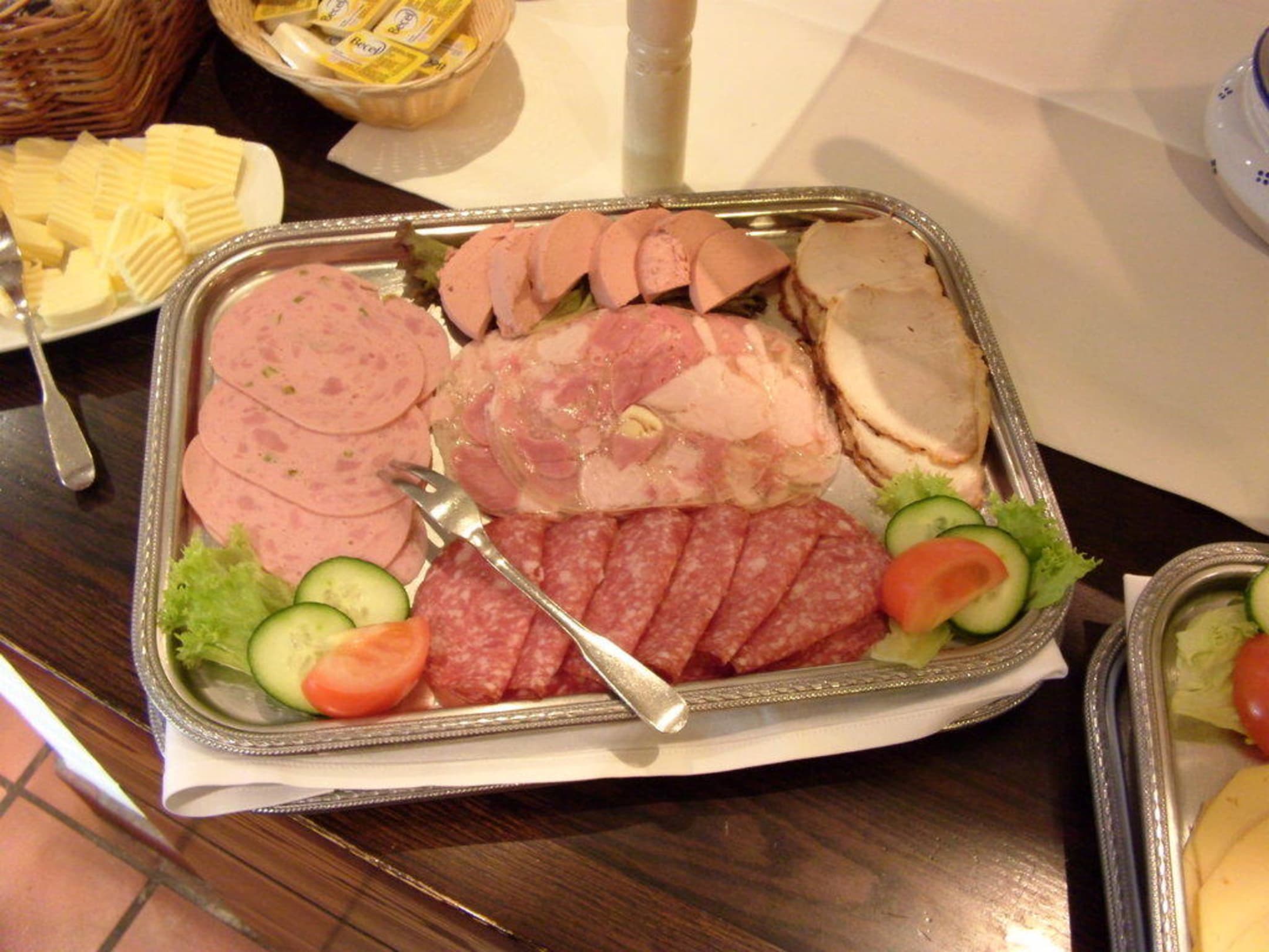 teilweise hausgemachte Wustsorten. Sülze , Leberwurst unbedingt probieren. Auch der Matjes war ein Leckerbissen, ( nicht auf diesem Foto ! )