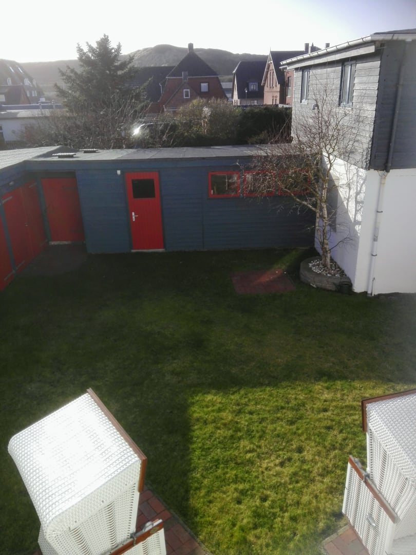 Der Blick auf die Dünen von Wohnung Nr. 13 im Haus Rolf.