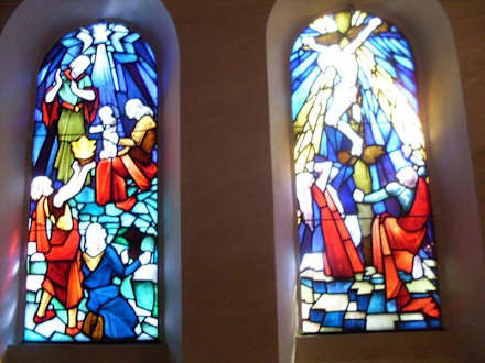 Glasfenster in der Kapelle des Hauses Hainstein.