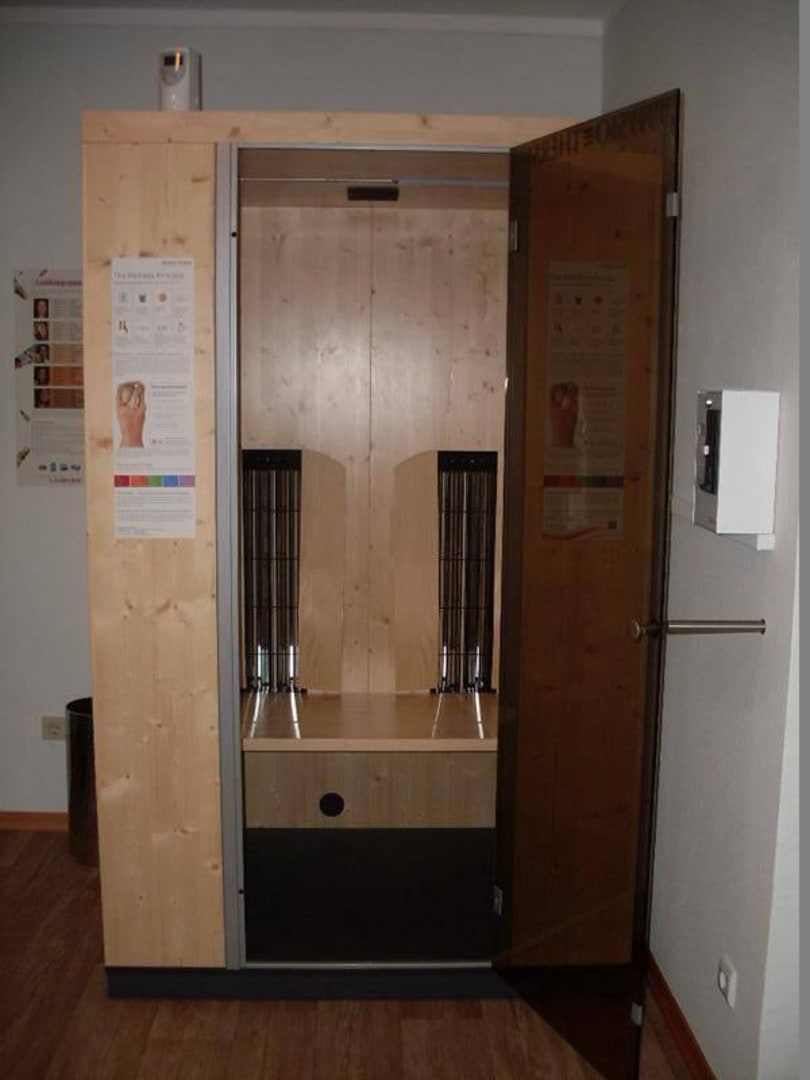InfrarotkabineInfrarotkabine mit zwei Sitzplätzen im Fitnessraum zur Wärmebehandlung, Entspannung und Vitalisierung.
