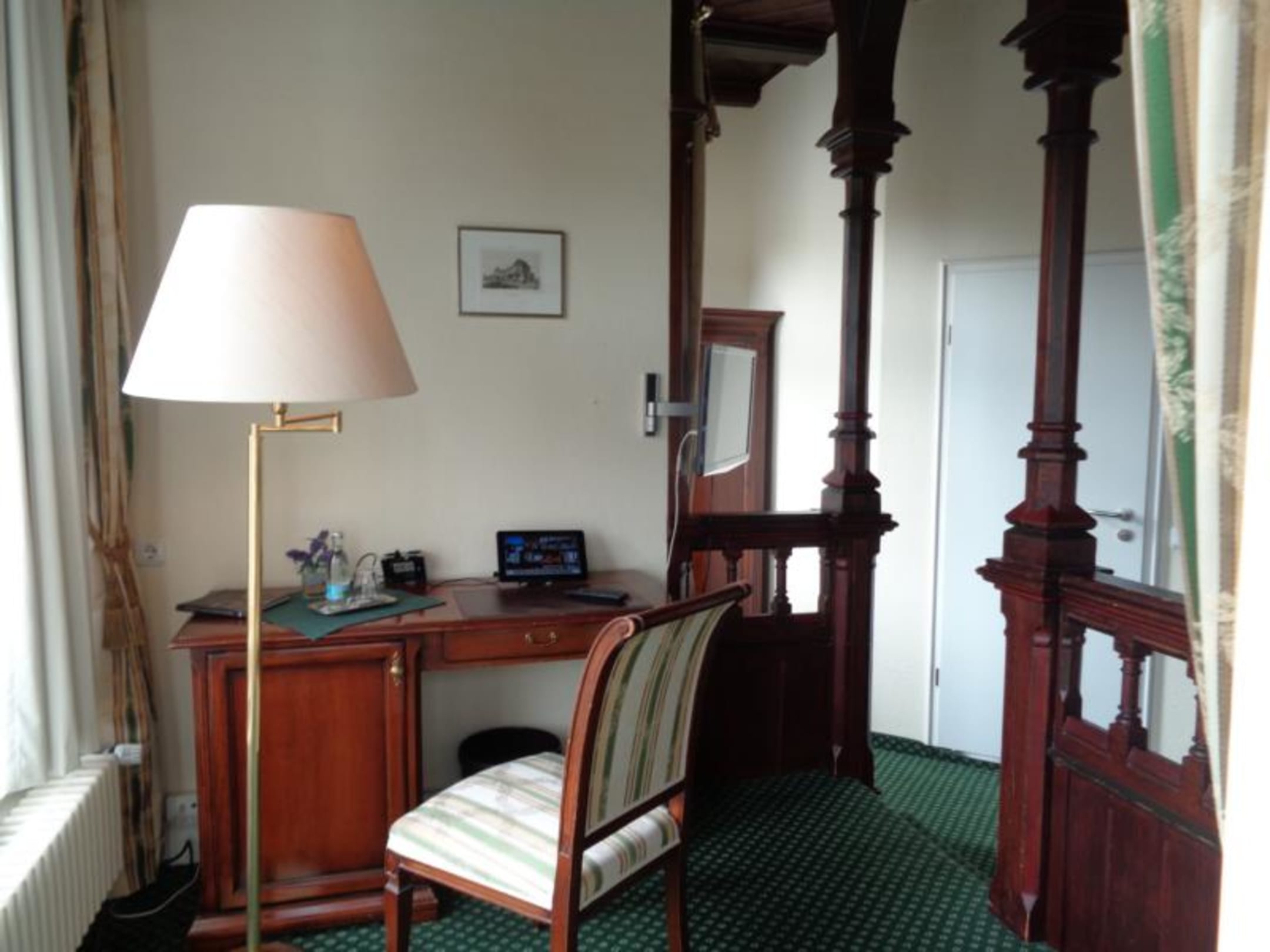 Blick zum Schreibtisch mit Tablett und PC