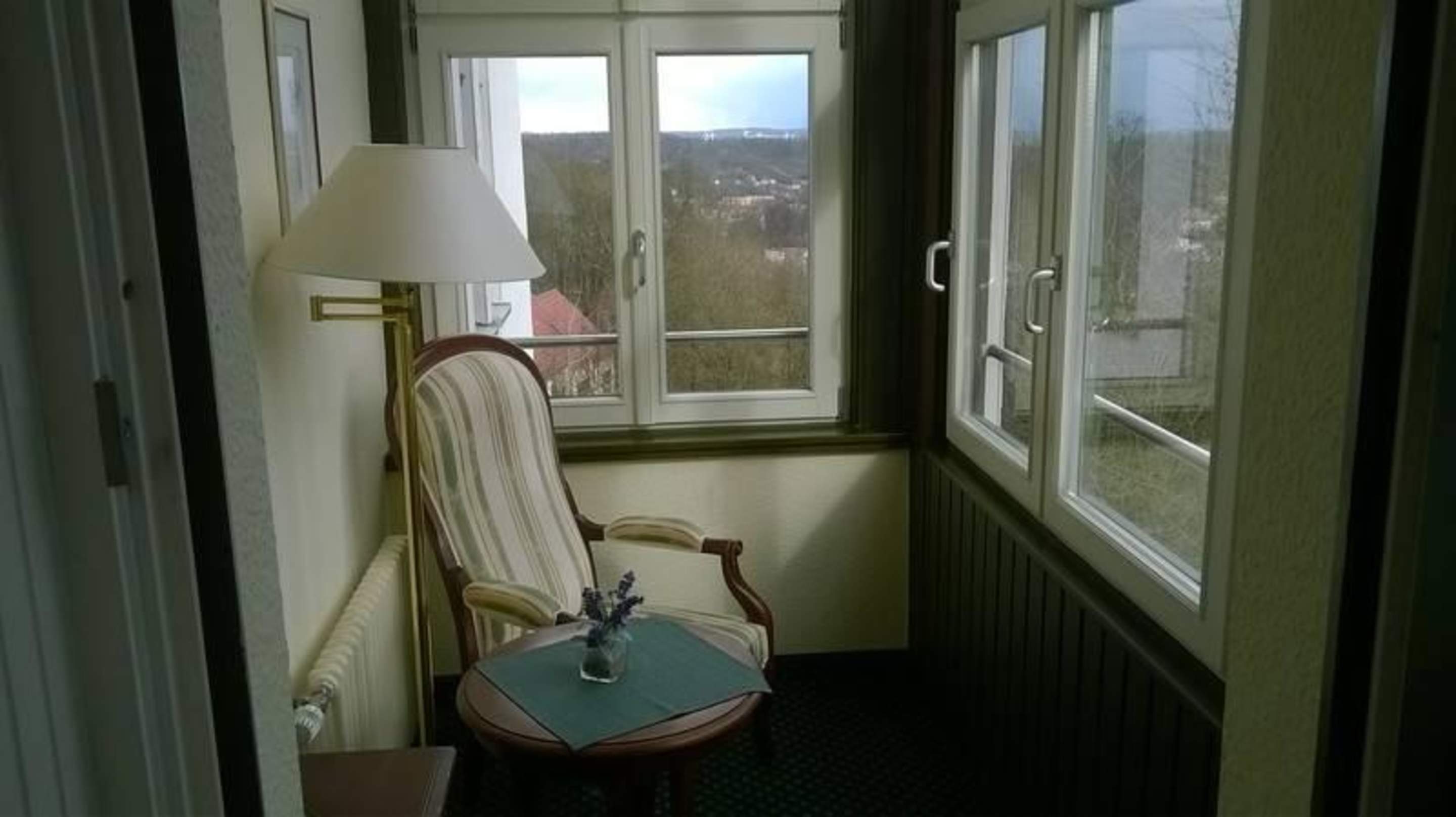 Erker mit SesselZu meinem Zimmer gehörte ein hübscher, beheizter Erker mit gemütlichem Sessel und Tisch.