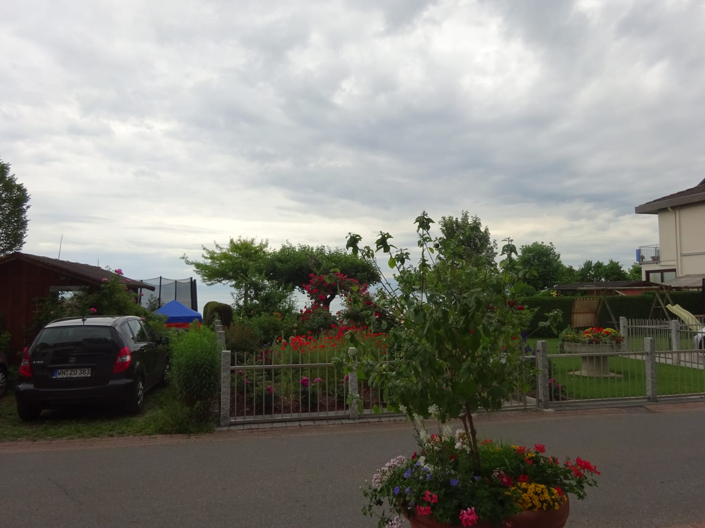 Garten direkt gegenüber des Hauses nur durch verkehrsberuhigte Zone getrennt