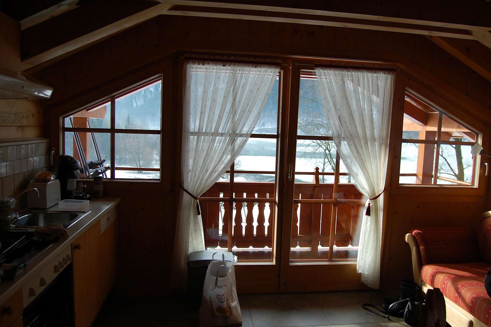 Schöne Wohnküche mit Balkon und Blick auf den Hintersee.