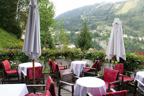 Terrasse mit Blick auf Bad GasteinDie Terrasse kann bei schönem Wetter für Kaffee oder Mahlzeiten genutzt werden - ein herrlicher Blick!