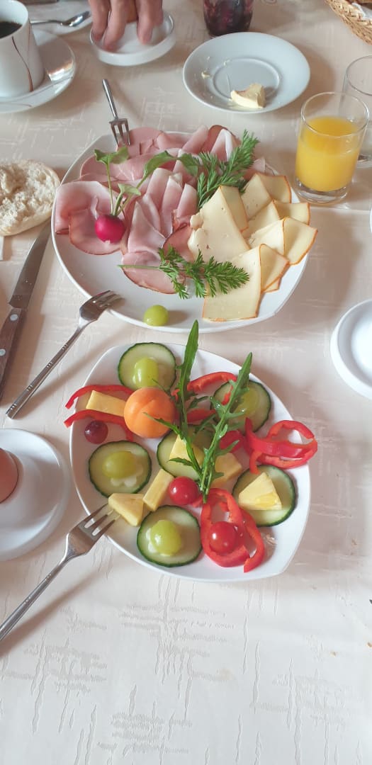 Liebevoll zubereitetes Frühstück von den Gastgebern.