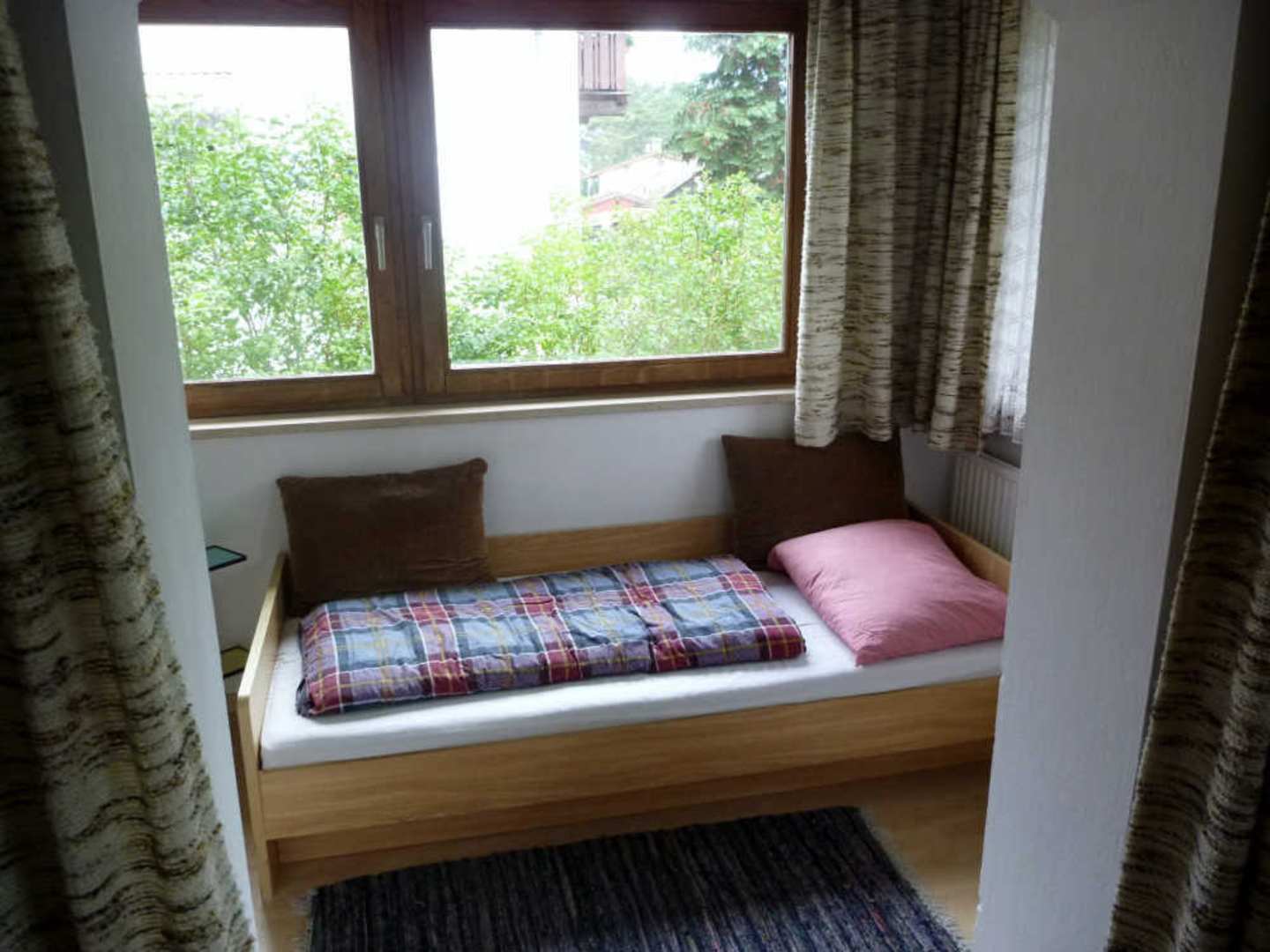 mit Vorhang abgetrennter Bereich im Schlafraum