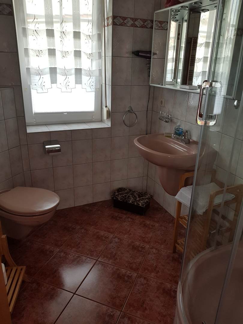 WC mit Dusche im Erdgeschoß. Im OG befindet sich ein weiteres Bad mit Wanne.