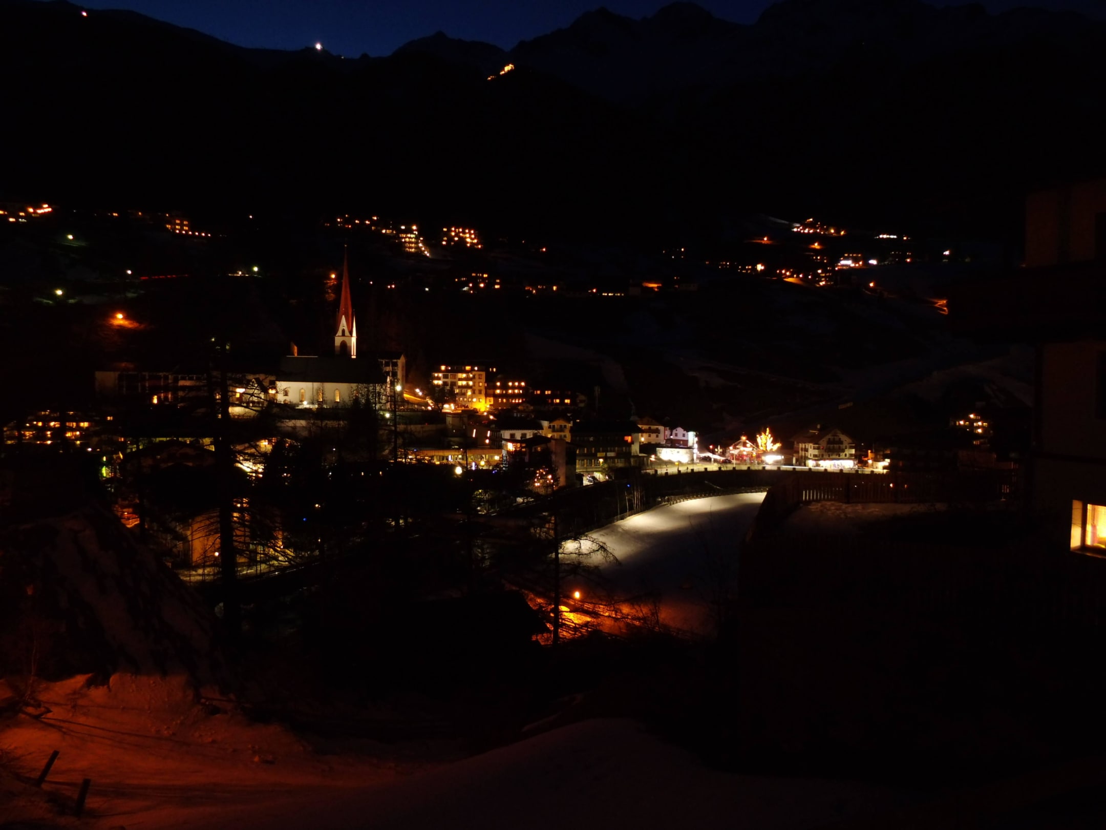 Sölden bei Nacht von der Terrasse aus gesehen