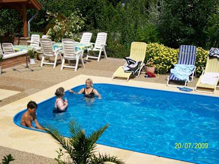 Blick vom Zimmer auf den Pool