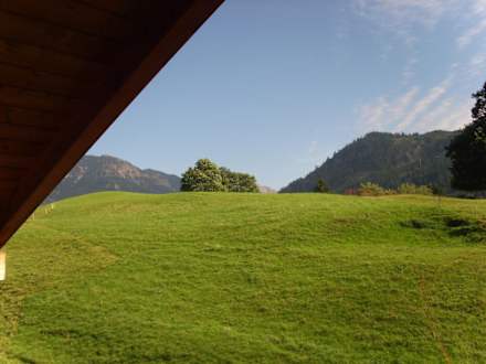 Blick zu den Wiesen und Bergen vom Balkon