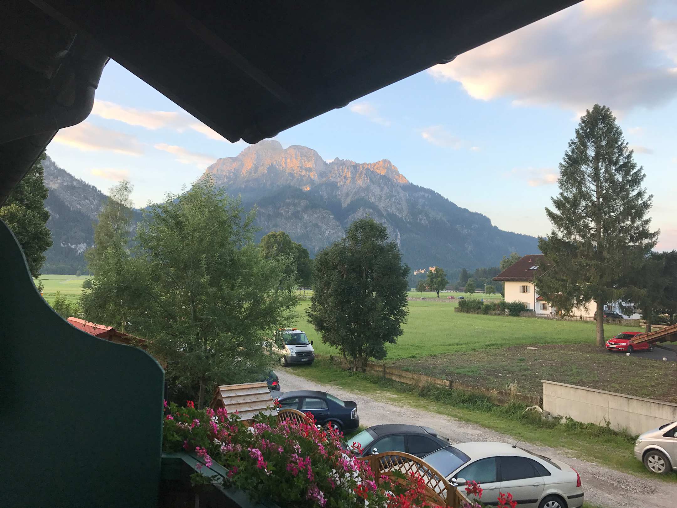 Hier wurde uns erklärt, dass das Neuschwansteinschloss sich hinter den Bäumen befindet. (Und wir dürfen uns das Schloß vom Parkplatz anschauen.) 😶