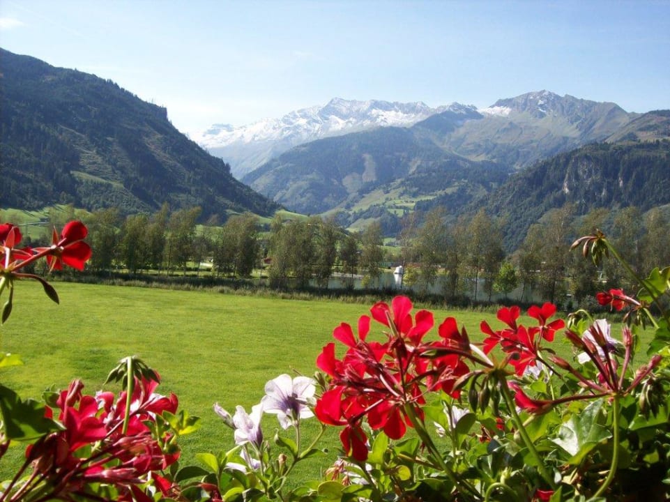 Blick vom Balkon auf See und Berge