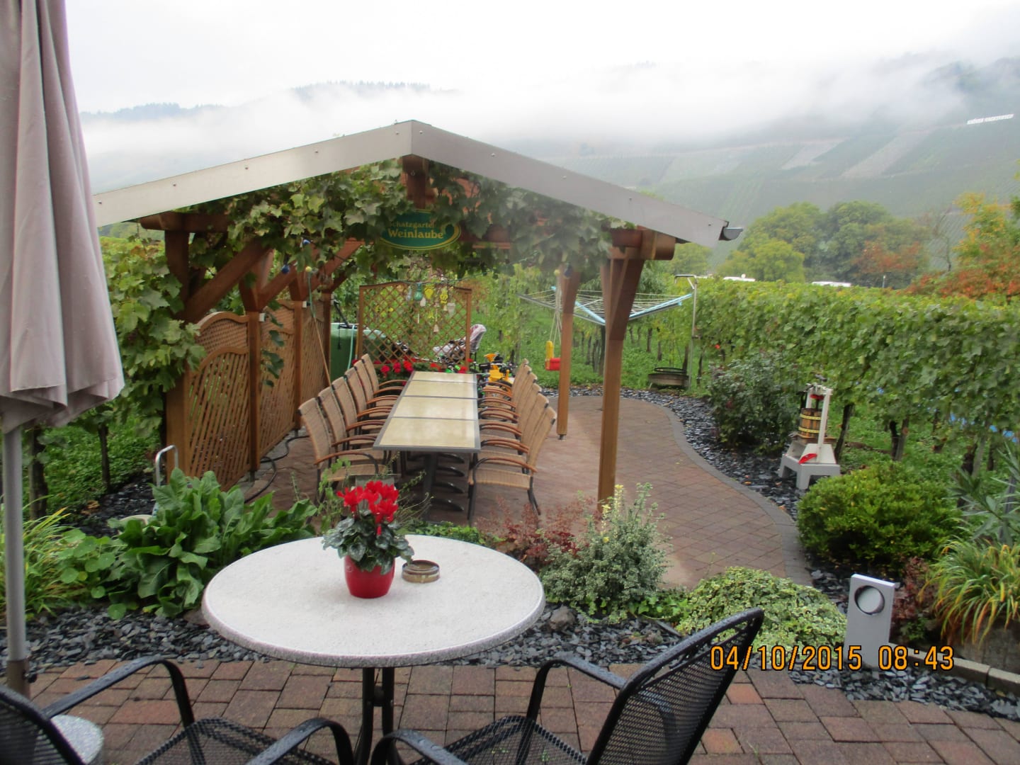 Der Blick vom Fruehstueckstisch(I'm Wintergarten) morgens um 8:30 Uhr