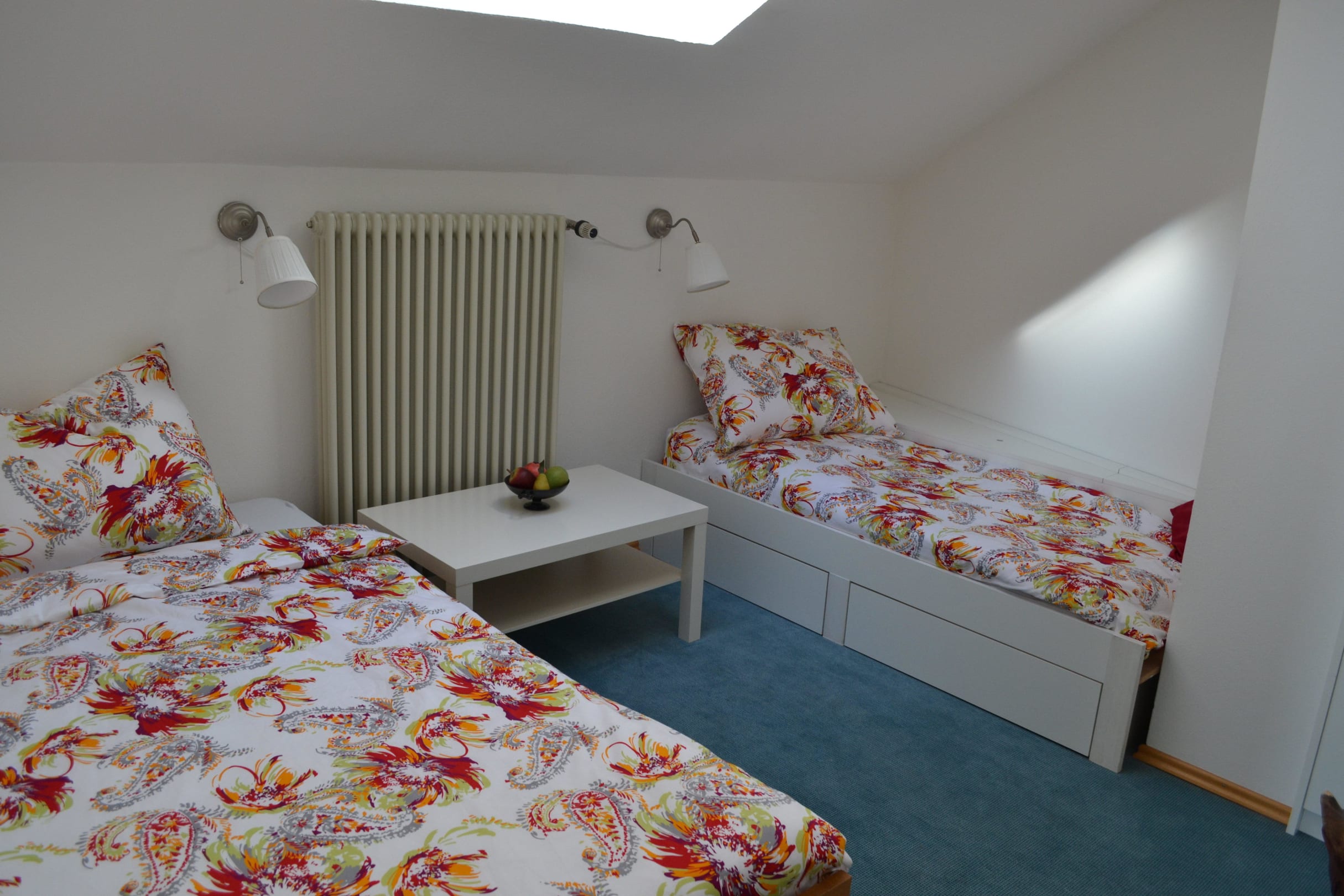 Schlafzimmer mit einem Doppel-und einem Einzelbett