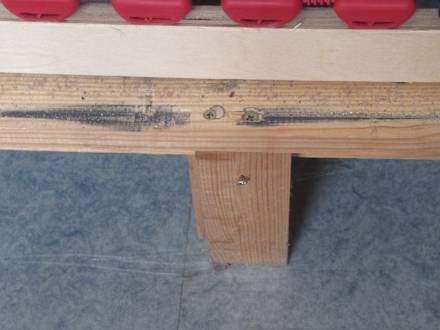 Notdürftig repariertes Bett
