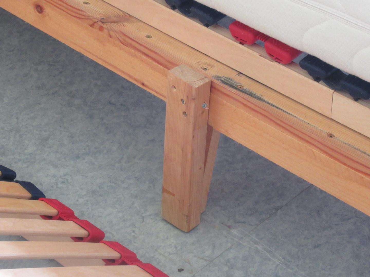 Notdürftig repariertes Bett