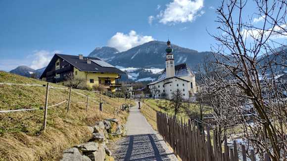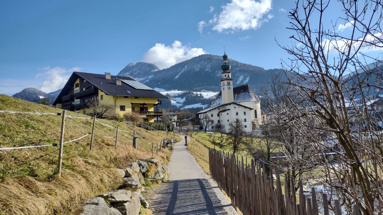 SonstigesFussweg um Reither Badesee mit Blick auf Reither Kirche, im Sommer kann msn im Natursee baden