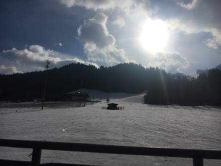 Blick aus dem Fenster Richtung Skipiste