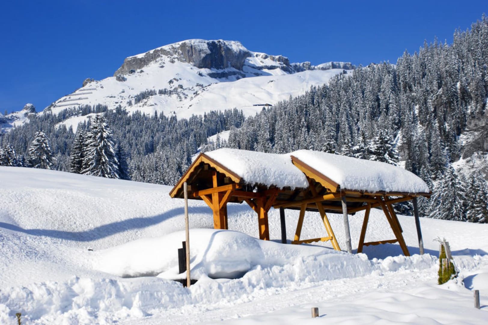überdachte Sitzecke hinter dem Haus Waldesruh - Blick zum Hohen Ifen