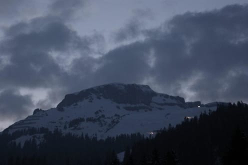 abendlicher Blick vom Haus Waldesruh zu den Pistenbullys im Skigebiet Ifen.