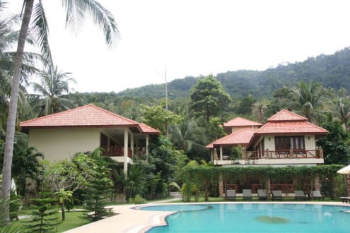 Pool mit Blick aufs Hotel