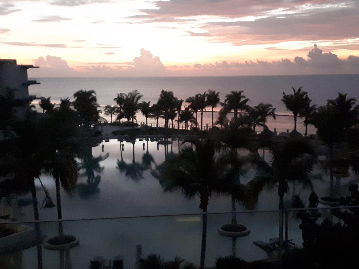 Blick vom Zimmer zum Pool und zum Meer