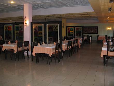 RestaurantBuffetrestaurant vor dem Ansturm -noch mit Besteck und Servietten