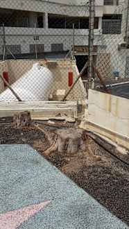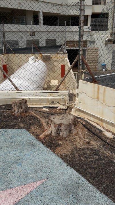 Kinderspielplatz mit angesägten Baumstämmen