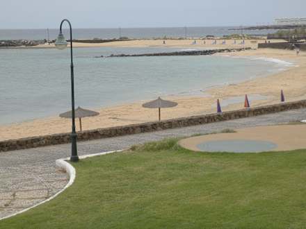 Strand vorm Hotel bei Flut