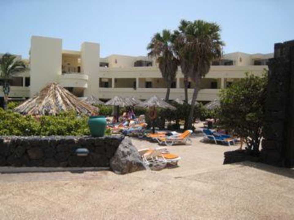 unterer Pool, Liegen und eines der Wohngebäude