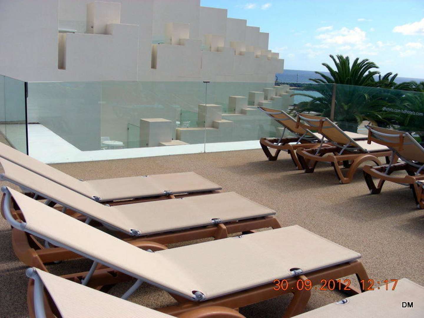 Blick vom oberen PoolGenügend Liegen, auch super Qualität, aber viiiiel zu wenig Schirme und die paar sind unbeweglich