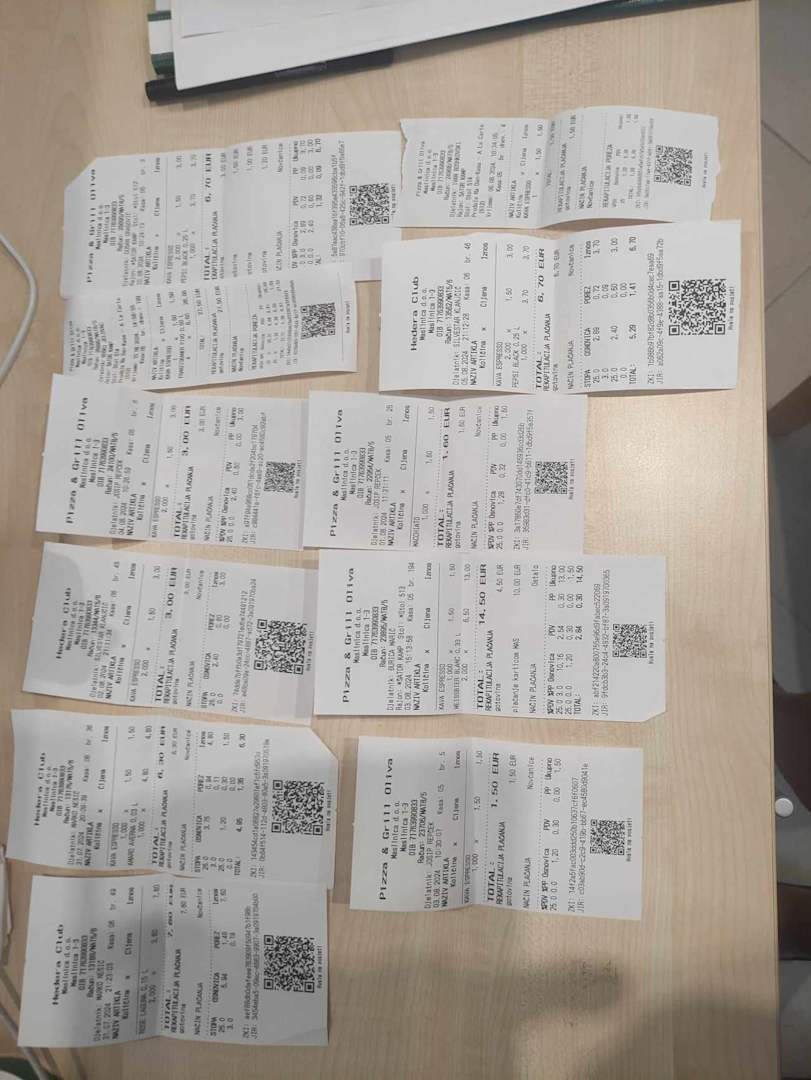 Belege für zusätzliche Getränke (nicht vollständig), obwohl wir AI gebucht haben.