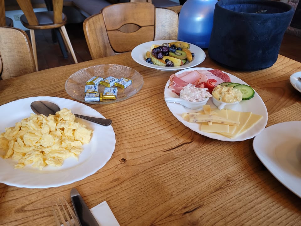 Frühstücksangebot wird per Teller gebracht,Kaffee ist sehr gut