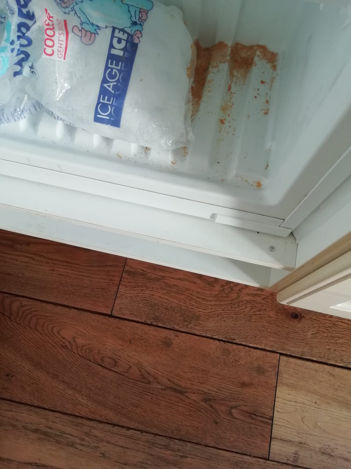So fanden wir den Gefrierschrank vor.,mit Resten vom Vorgänger