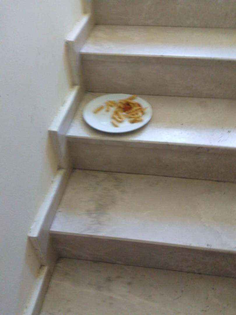 Essen im Treppenhaus