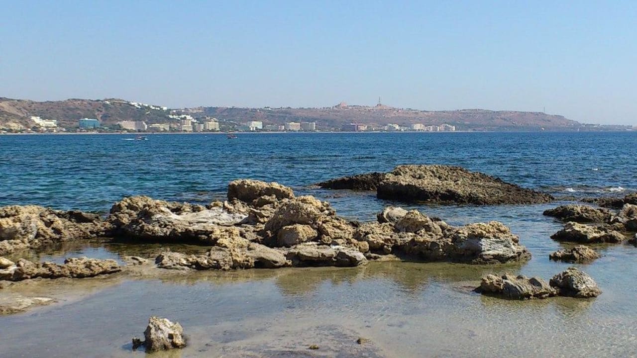 Der Strand Wenn man weiter rechts am Strand entlang geht kommt man immer mehr auf Felsenreiche Strandabschnitte. Super zum Schnorcheln.
