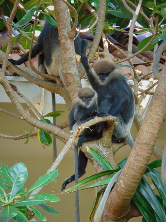 Sehr freundliche (endemische) Languren, die sich jeden Tag in ihrer großen Familie in den Bäumen rund um die Zimmer aufhalten. Sie sind eher scheu und überhaupt nicht aggressiv und freuen sich über Obst!