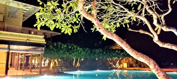 Poolanlage am Abend
