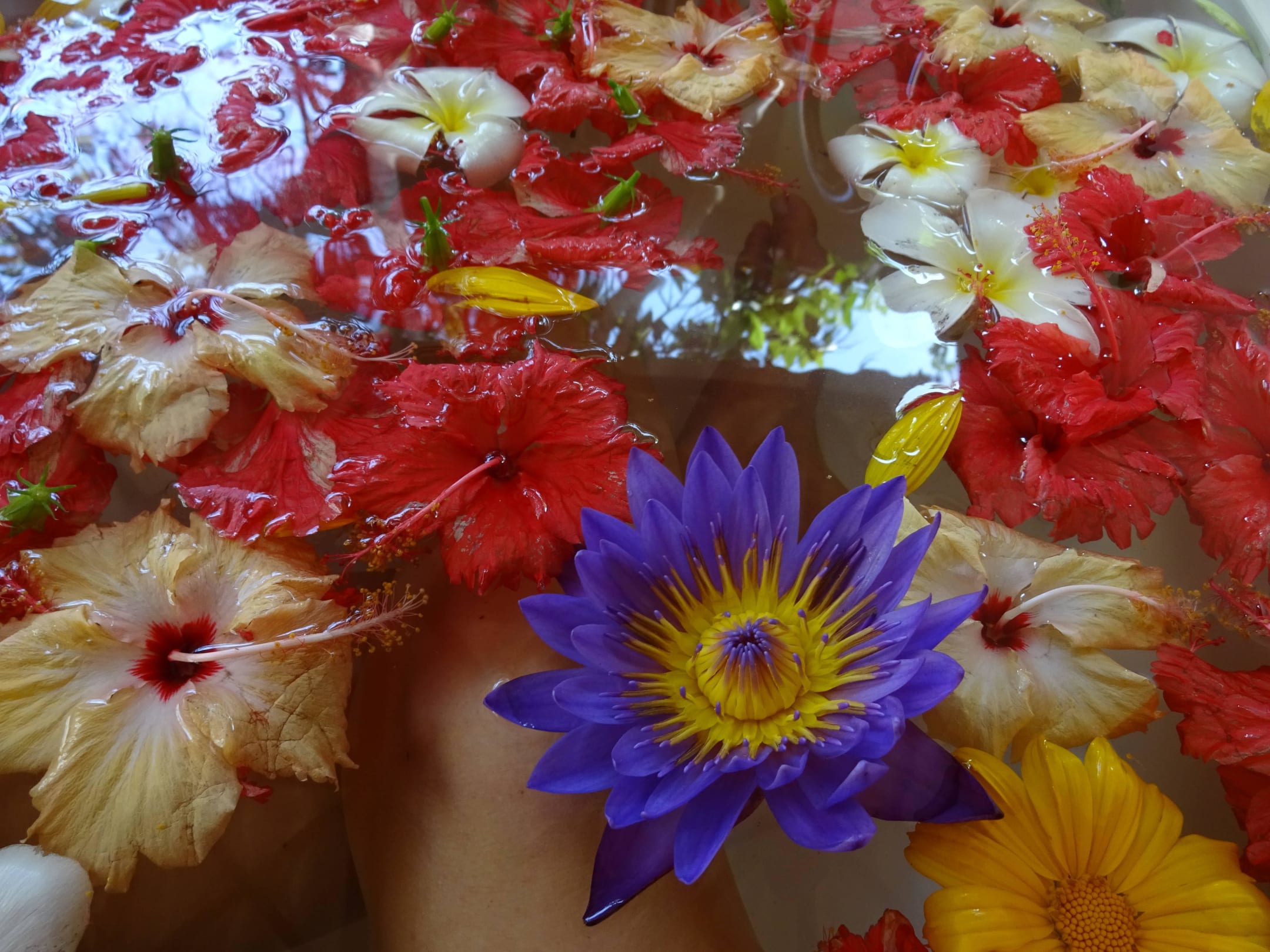 Ein Blüten-Wannenbad im Freien.