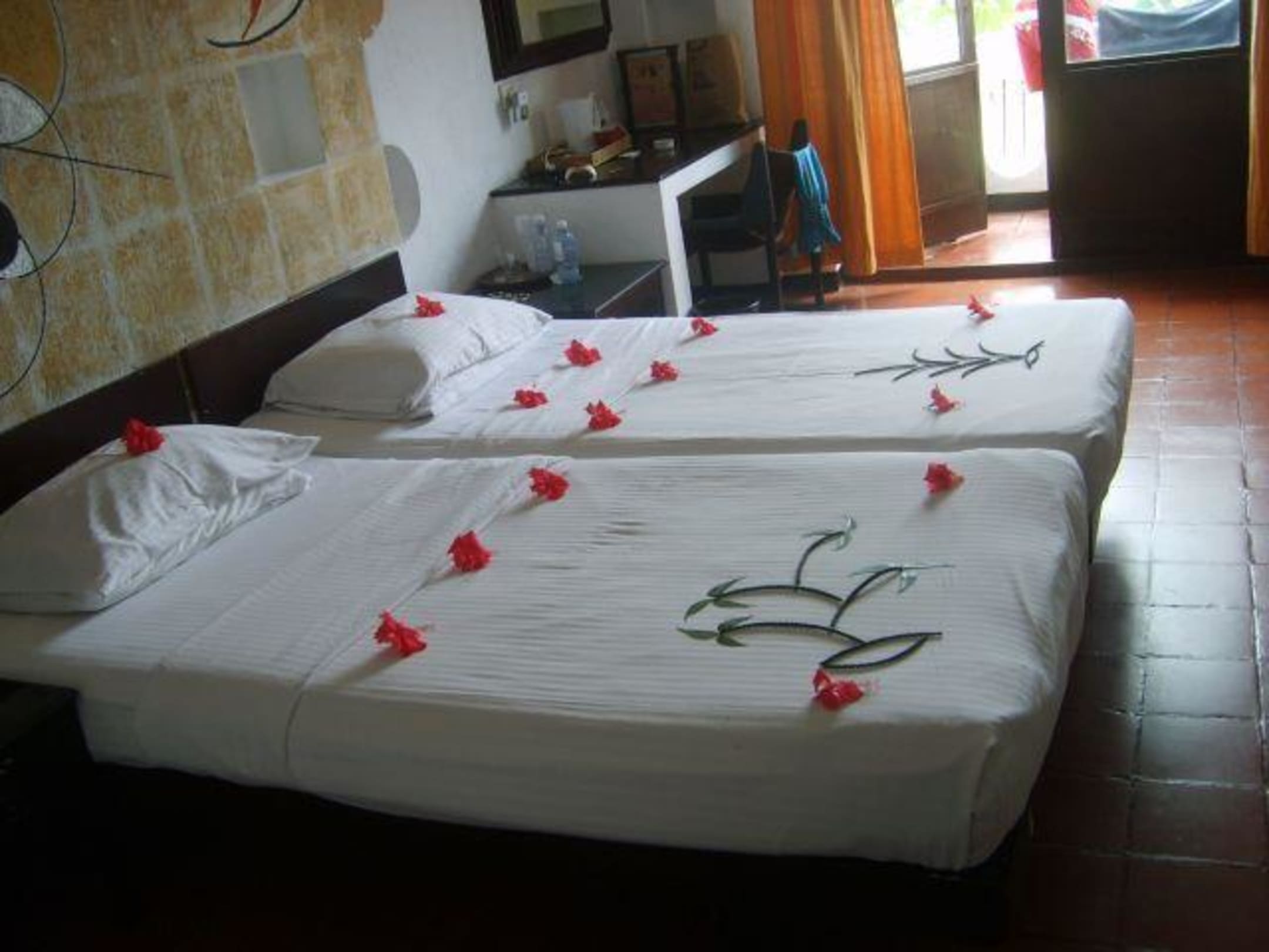 Standardowy pokój w hotelu neptuneobsługa zadaje sobie tyle trudu, zeby umilić gościom czas i stroi łóżka kwiatami