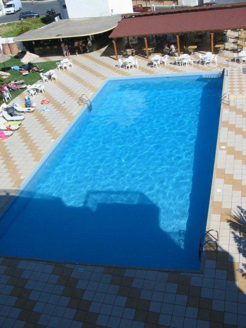 Blick vom Balkon auf den Pool