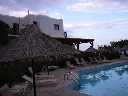 Pool mit Blick auf Rezeption